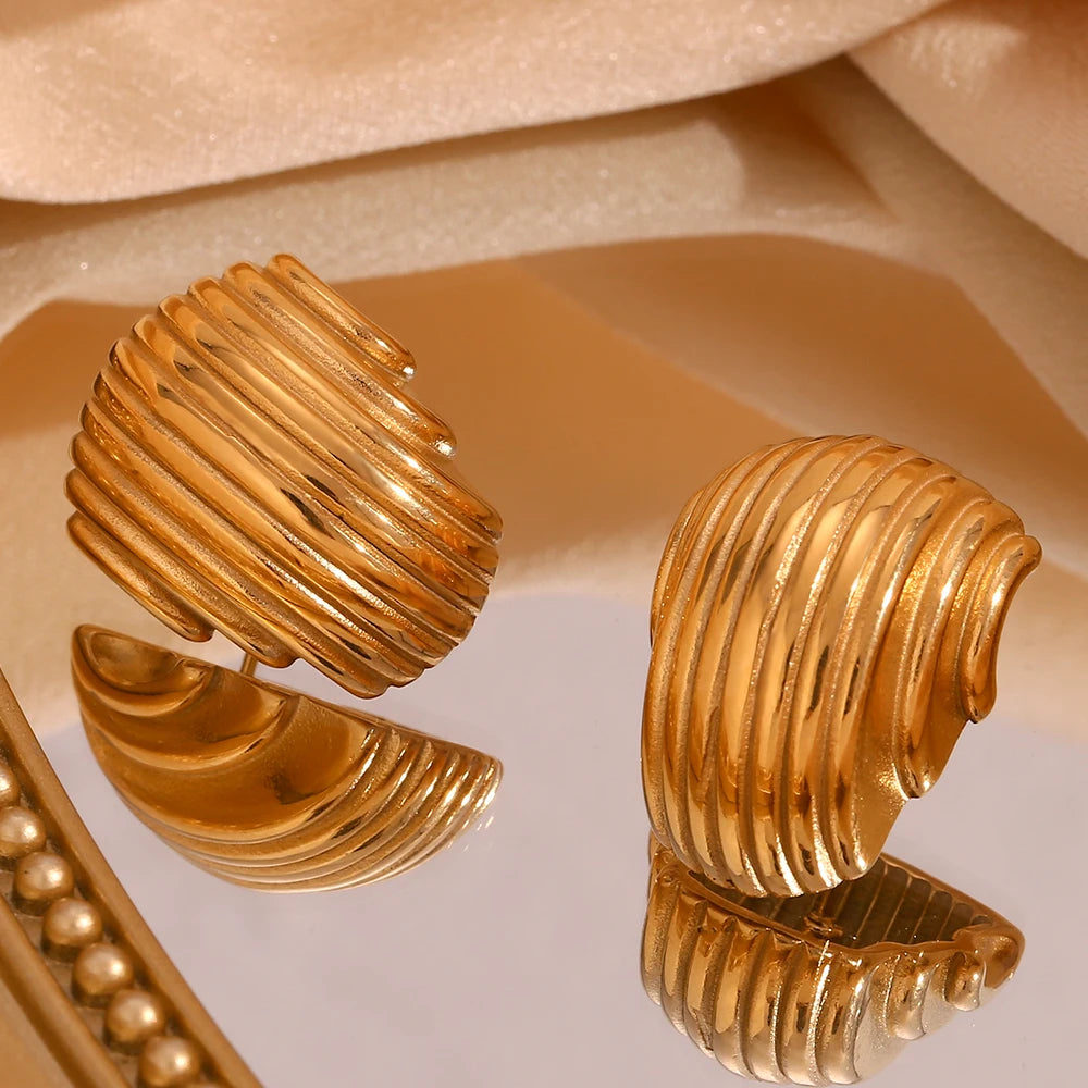 Die Armor Ohrstecker sind stilvolle geometrische Ohrringe aus hochwertigem 316L Edelstahl, verziert mit gravierten Streifen. Diese Ohrstecker überzeugen durch ihr modernes Design und ihre lange Haltbarkeit.