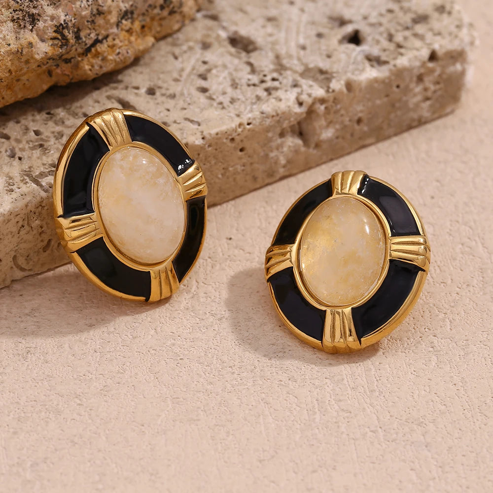 Die Ovalen Naturstein Ohrringe vereinen die zeitlose Eleganz von Natursteinen mit modernem Design. Jeder ovale Stein ist ein Unikat und verleiht diesen Ohrringen einen individuellen Charakter. Die Kombination aus natürlicher Schönheit und hochwertigem Edelstahl macht sie zu einem besonderen Schmuckstück.