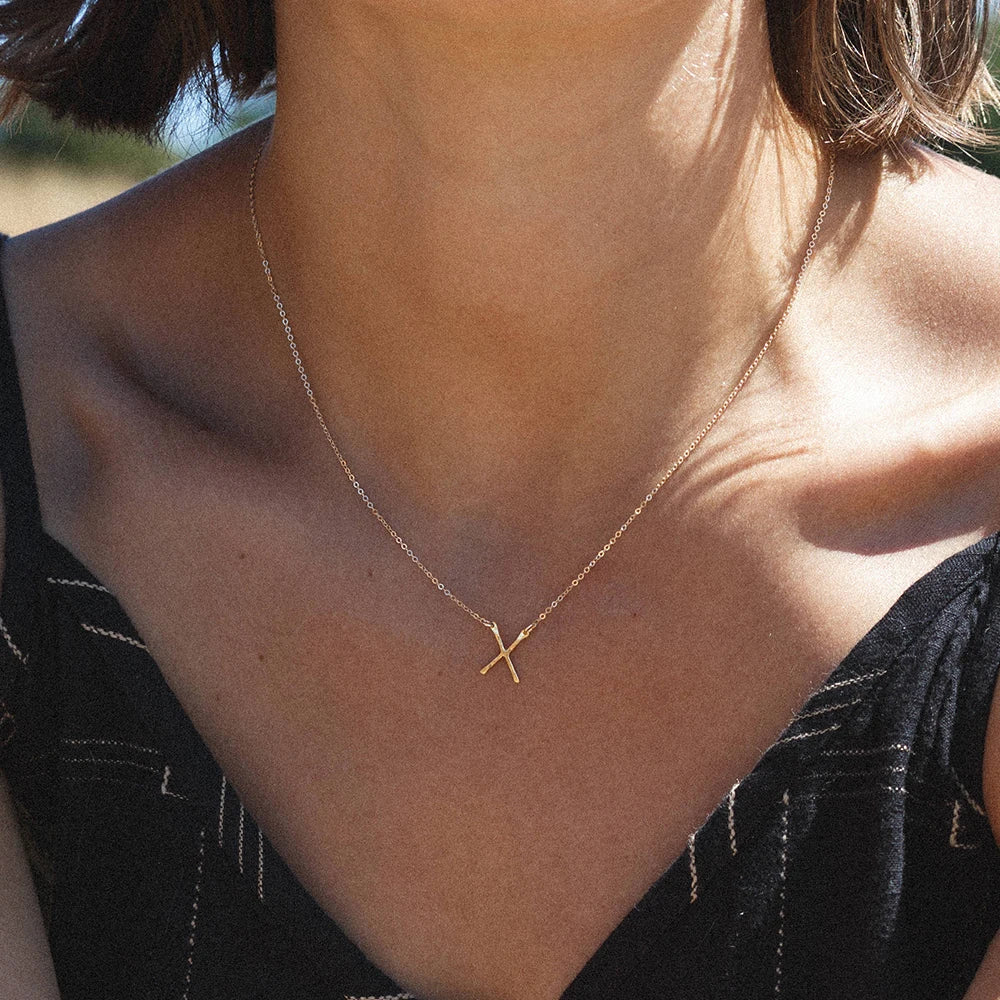 Das schlichte, geometrische X-Design macht diese Halskette zu einem vielseitigen Schmuckstück, das sich sowohl einzeln als auch in Kombination mit anderen Ketten tragen lässt.