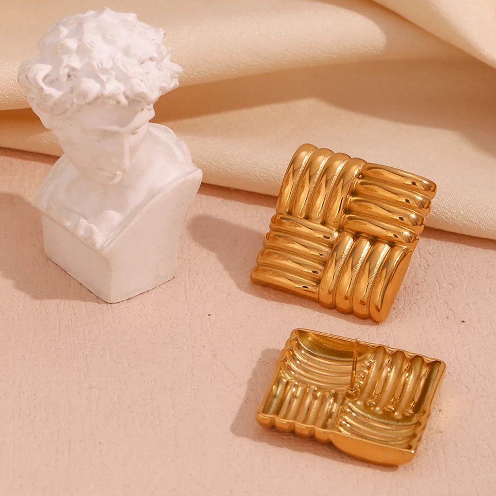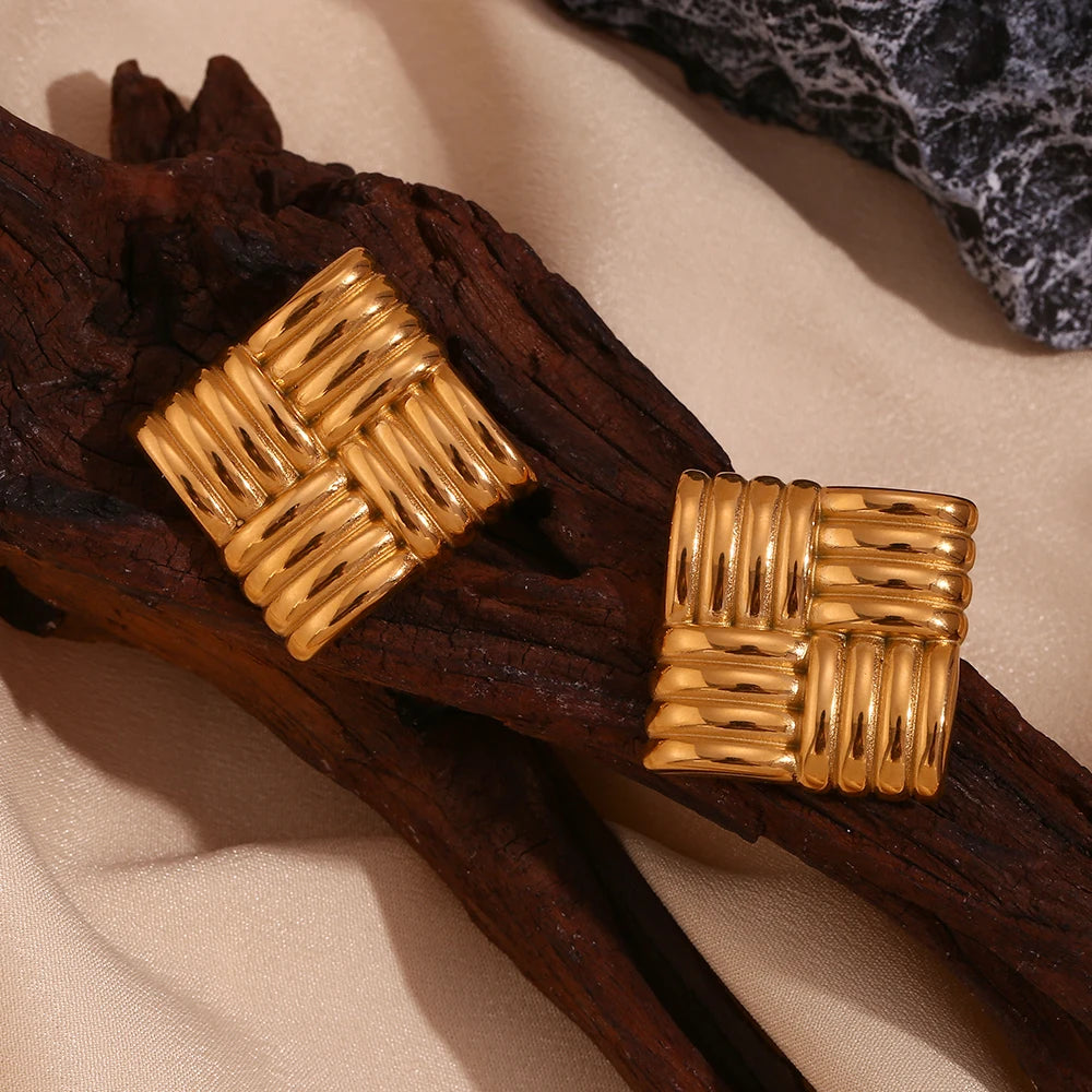 Die Gittermuster-Quadrat Ohrringe beeindrucken mit ihrem außergewöhnlichen Gittermuster aus horizontalen und vertikalen Streifen. Die strukturierte Oberfläche verleiht diesen quadratischen Ohrsteckern eine moderne und raffinierte Ausstrahlung. Mit 19,2 g Gewicht sind sie ein kraftvolles Statement-Piece für selbstbewusste Persönlichkeiten.